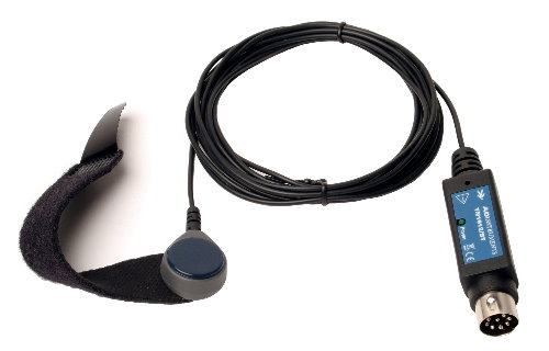 - Conecta-se diretamente a uma entrada analógica da porta do pod PowerLab (DIN)