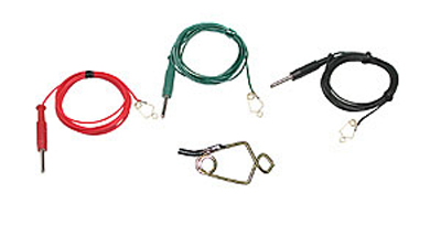 Um pacote de três eletrodos tipo grampo de mola não estéreis (metal de mola banhado a níquel e ouro), cada um com um fio condutor de 1,5 m e terminando em um plugue fêmea blindado de 1,5 mm. Foram projetados principalmente para serem usados com o amplificador FE231 Bio Amp. Além disso, eles podem se conectar a qualquer amplificador Bio Amp da ADInstruments com soquete de pino macho de 1,5 mm, incluindo o amplificador FE234 Quad Bio Amp, FE238 Octal Bio Amp, FE136 Animal Bio Amp (substituído) e ML138 Octal Bio Amp (substituído). Da mesma forma, eles podem se conectar a cabos de bioamplificador blindados de 3 fios, se necessário.